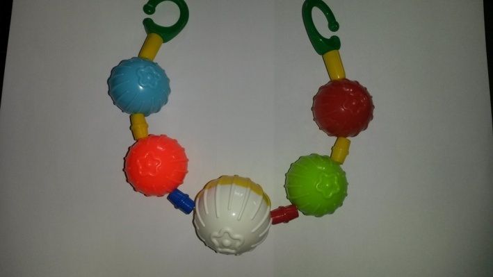 Chrastící zábrana na kočárek – dvě velké kuličky a tři malé.