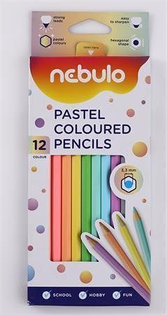 Barevné pastelky pastelové sada 12 barev šestihranné NEBULO