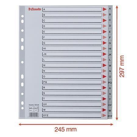 Barevné rejstříky, šedá, A4 Maxi, plast, A-Z, ESSELTE
