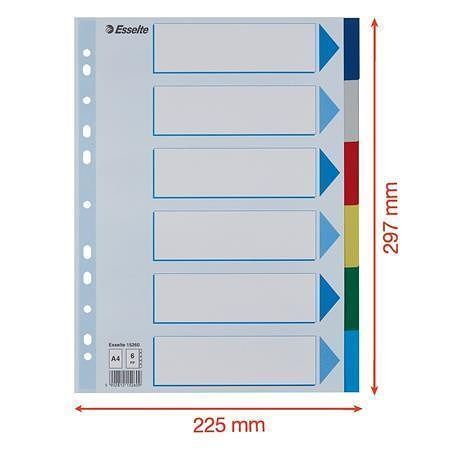 Barevné rozlišovače, mix barev, A4, plast, 6 dílů, ESSELTE