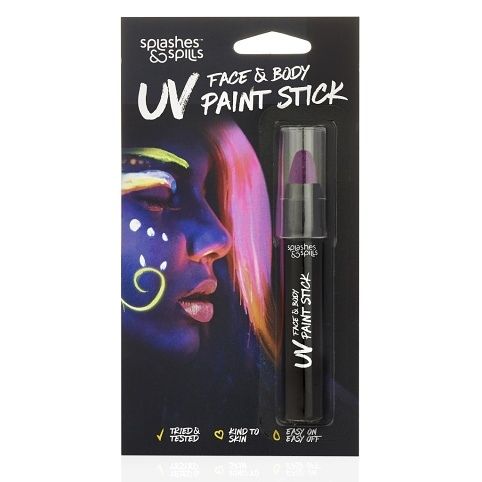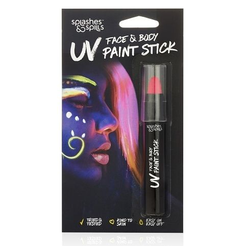 Barva na obličej a tělo UV v tyčince – barvou si můžete namalovat úžasné a jedinečné vzory na své tělo a obličej, a když jste ve tmě, budou svítit krásnou neonovou barvou. Naše barvy jsou vyrobeny z vysoce kvalitních surovin, které jsou bezpečné a šetrné k pokožce. V několika barevných provedeních – modrá, zelená, oranžová, růžová, fialová a žlutá. Dermatologicky testováno. Lehce odstranitelné vodou.