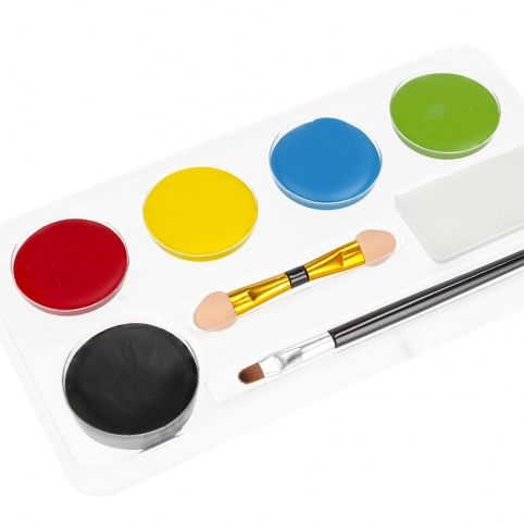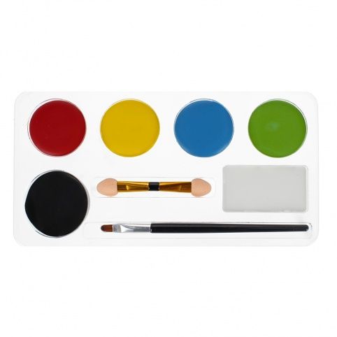 Obsah sady: 6 barev na malování na obličej, 1 x štětec, 1 x aplikátor na malování.