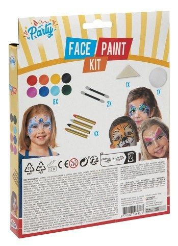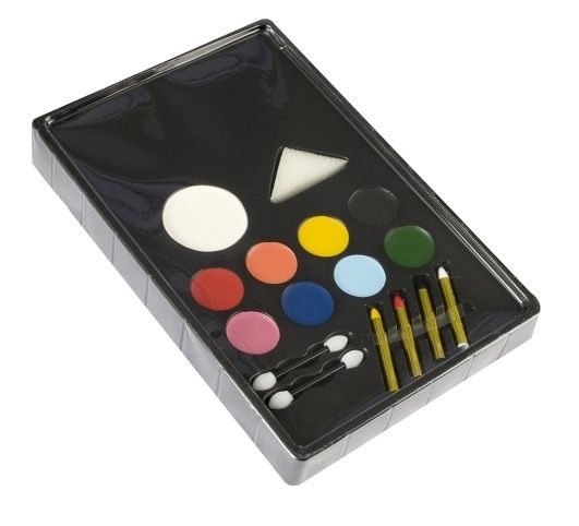 Barvy na obličej 16 ks- balení obsahuje 8 barev na obličej, 4 tužky na obličej, 2 houbičky a 2 aplikátory.