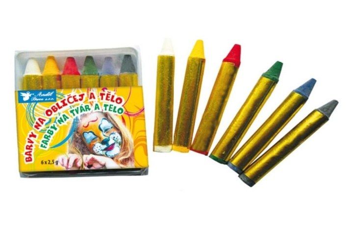 Barvy na obličej a tělo 6ks v sáčku 6x7cm karneval
