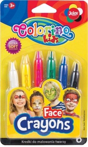 Tužky na obličej. Kvalitní obličejové nezávadné a dobře umývatelné barvy. V balení je 6 barev v tužce. Odstíny jsou syté, barvy mastné, velice dobře se nanášejí.