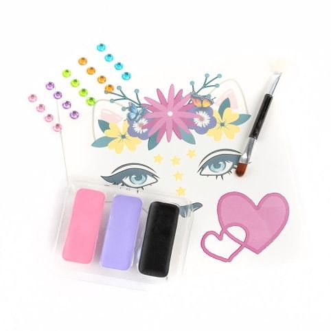 Sada obsahuje barvy na obličej, 4 archy tetování a kamínky k dekoraci.