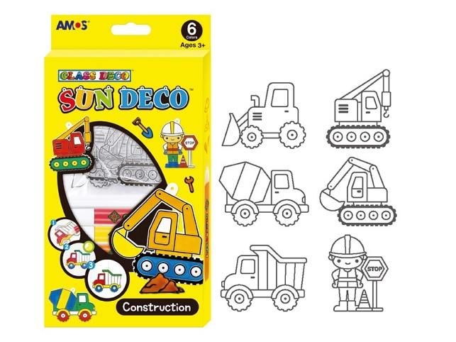Sada barviček na sklo + závěsná sklíčka. Barvičky jsou také vhodné na okno, zrcadlo, dlaždice, aj. Balení obsahuje: 6 ks barev na sklo 10,5 ml ( bílá, žlutá, oranžová, červená, modrá, zelená ) 6 ks závěsných sklíček ( stavební stroje ) NÁVOD: Vybarvěte sklíčka, nechte 12 hodin schnout. Po zaschnutí se vytvoří kouzelný barevný obrázek, který se může zavěsit např. do okna, nebo použít jako přívěsek na tašku, klíče apod.