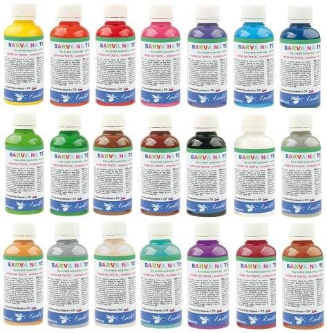 BARVA NA TEXTIL NA SVĚTLÉ MATERIÁLY 50g Vodou ředitelná barva na většinu přírodních materiálů. Barvu naneseme na textil a necháme zaschnout. Potom ji několik minut zažehlujeme z rubové strany. Pereme podle pokynů výrobce textilu. Obsah lahvičky: 50 ml. Vyrobeno v ČR