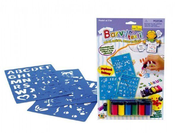 Barvy na textil se šablonami 6x7ml na kartě 20x32cm