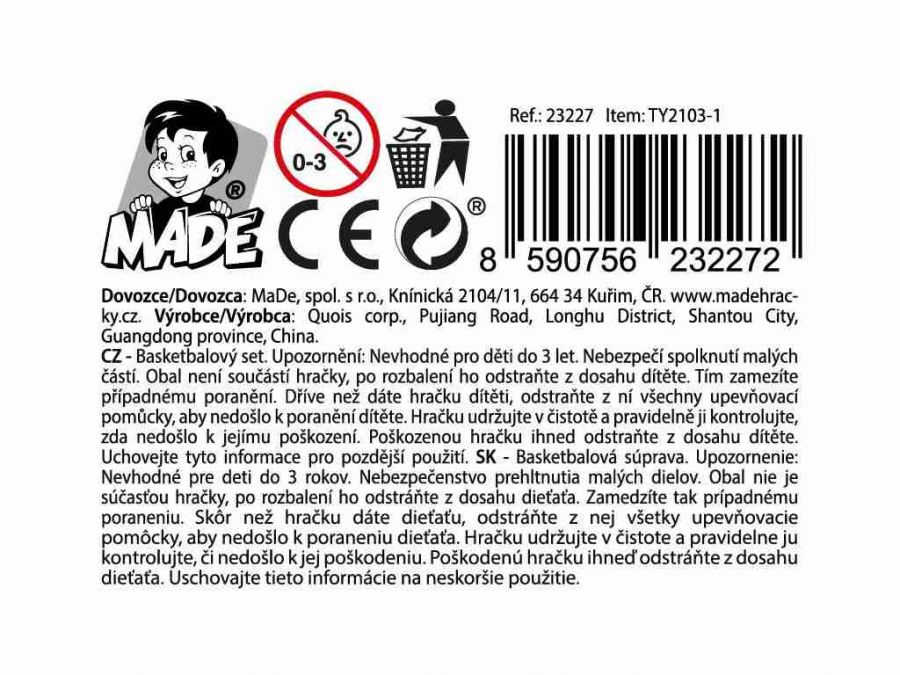 Tento basketbalový koš s příslušenstvím je skvělým doplňkem pro malé i velké sportovce. S výškou 31 cm, šířkou 30 cm a hloubkou 5 cm poskytuje ideální rozměry pro skvělou zábavu. Doporučený věk od 3 let zaručuje, že se celá rodina může zapojit do hry. Materiál plast zajišťuje odolnost a dlouhou životnost produktu. Díky jednoduché montáži a univerzálnímu určení pro kohokoliv je tento koš skvělou volbou pro trénink nebo zábavu. Užijte si spoustu sportovních radovánek s tímto basketbalovým košem.