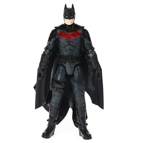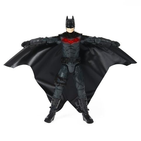 Interaktivní filmová figurka Batmana ve velikosti 30 cm s roztažitelným wingsuit pláštěm. Na hrudi má svítící symbol, který aktivuje zvukové efekty.