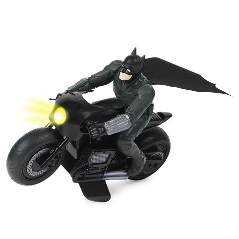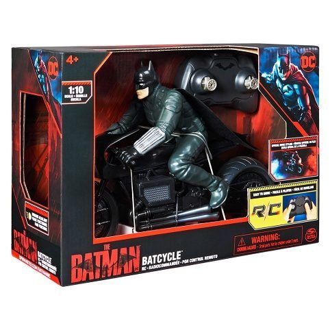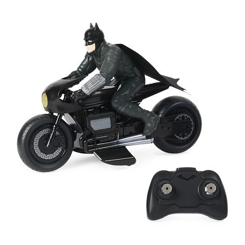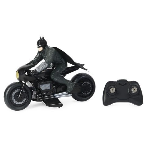 Batmanův filmový motocykl na dálkové ovládání v měřítku 1:10 s pevnou figurkou Batmana. Dálkové obládání na frekvenci 2,4 GHz umožnuje provoz až 6 stejných vozidel na jednom místě až na vzálenost 30 metrů. Na baterie: 2x AA (nejsou součástí balení)