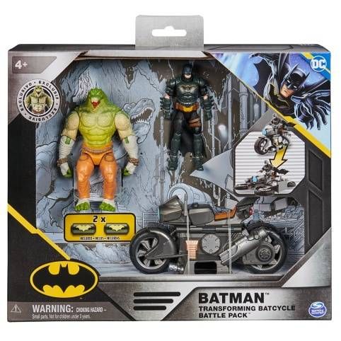 Připravte se na napínavá dobrodružství v Gotham City s balíčkem Transforming Batcycle Battle Pack! Připravte se na epickou akci ve vzduchu i na zemi! Přeměňte motorku Batcycle na Bat-kvadrokoptéru. Tato neuvěřitelná hrací sada je navržena tak, aby byla kompatibilní s 10centimetrovými figurkami, takže děti mohou vymýšlet epické bitvy a zachraňovat město před superpadouchy. Sada obsahuje exkluzivní 10centimetrové figurky Killer Croca a Batmana! Batcycle obsahuje 2 Bat-granáty pro likvidaci superpadouchů! Tento balíček s tematikou Batmana je ideálním dárkem pro jeho fanoušky, kteří milují nápaditou hru a superhrdinskou akci. Pořiďte svému dítěti další přírůstek do světa Batmana s akčními figurkami z komiksů DC Metallic Rebirth Batman, Robin, Joker a dalšími (každá se prodává samostatně). Tyto hračky pro holky i kluky jsou ideální pro děti, které milují figurky Ligy spravedlnosti, DC multiverza, sběratelské předměty z filmů o superhrdinech, auta na dálkové ovládání a další hračky! Ať už mají narozeniny, svátek nebo nastala jiná zvláštní příležitost, tato herní souprava poskytne dětem od 4 let hodiny zábavy a legrace.
