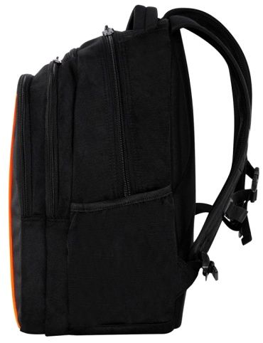 Velikost: L kapacita: 26 litrů 3 hlavní kapsy přední kapsa na zip komfortní tvarovaná záda polstrované ramenní popruhy zesílené polstrované dno polstrovaná rukojeť kapsa s organizérem kapsa na notebook kapsa na mobilní telefon karabinka na klíče kapsa na brýle výstup pro sluchátka boční kapsy na láhev s vodou LED pásky 600D Polyester