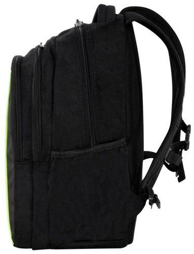 Velikost: L kapacita: 26 litrů 3 hlavní kapsy přední kapsa na zip komfortní tvarovaná záda polstrované ramenní popruhy zesílené polstrované dno polstrovaná rukojeť kapsa s organizérem kapsa na notebook kapsa na mobilní telefon karabinka na klíče kapsa na brýle výstup pro sluchátka boční kapsy na láhev s vodou LED pásky 600D Polyester
