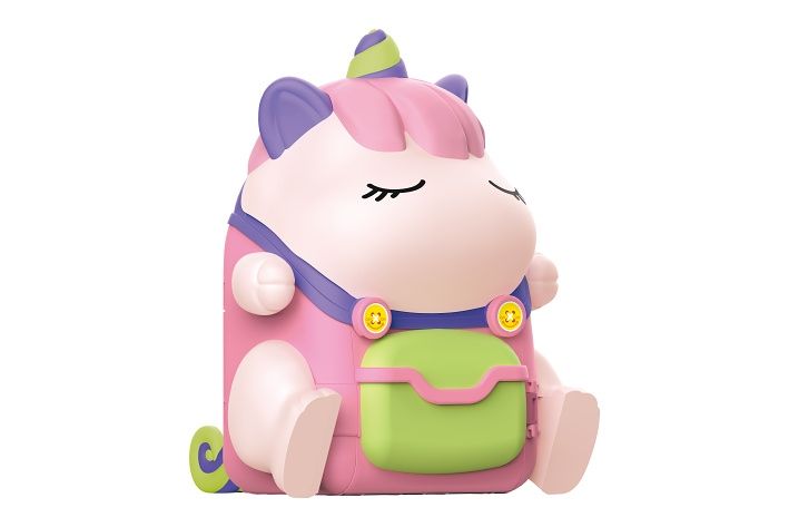 Batoh domek jednorožec 2v1. Rozměry batohu 18x16x26 cm. Světelné a zvukové efekty. 3xAA baterie nejsou součástí. Domeček obsahuje ložnici, obývák, koupelnu, kuchyni s jídelnou, zahrádku. Součástí 2 figurky, nábytek, květináče, nářadí na zahradu, oplocení. Obrázkový návod na složení na spodní straně obalu.