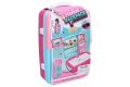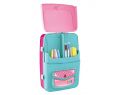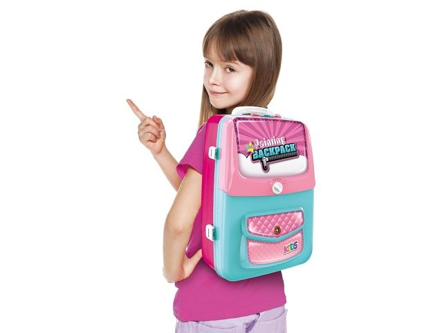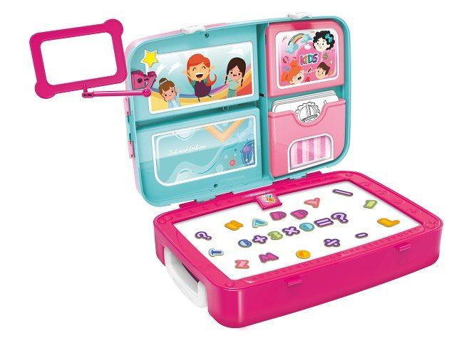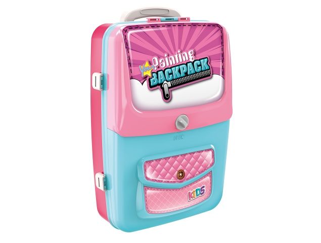 Batoh kreativní. Velikost 28cm. Otevírací batoh, obsahuje otevíratelné přihrádky, kreslicí tabulku na mazací fixy a přichycení magnetek, druhou strana tabulky lze popsat křídou, magnetická čísla a písmenka, křídy, hubku na mazání, mazací fixy, popruhy na záda, nálepky na ozdobení batohu.