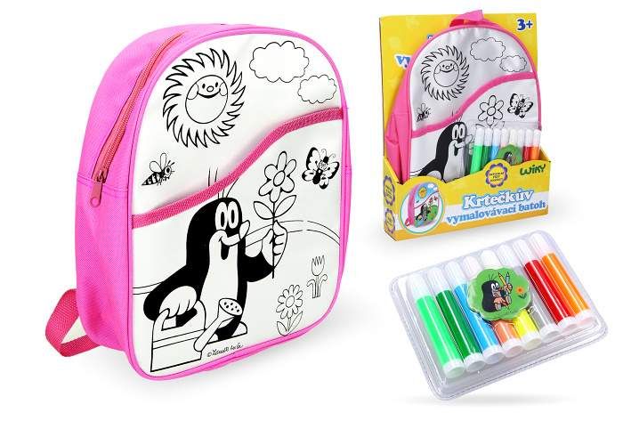 Batoh Krtek vymalovávací růžový 30 cm + 8 fixů