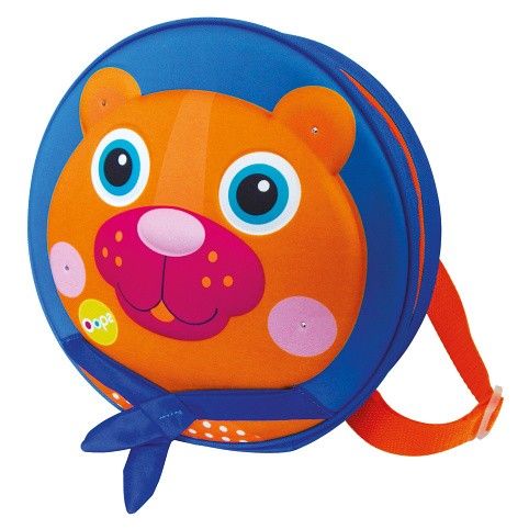 Barevný, kulatý batoh, motiv medvěd, vyrobený z ethylenvinylacetátu, proto je extrémně pevný a odolný. S nastavitelnými polypropylenovými popruhy, velikost cca 7,5x26,5x26,5 cm. Pro děti starší 18 měsíců. Pozor: Délka popruhu by měla být nastavena dospělými.