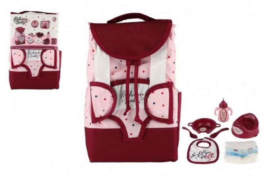 Batoh s nosítkem pro panenku látka 17 x 26cm s doplňky