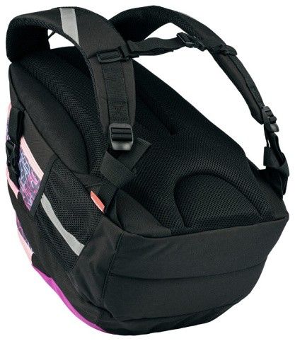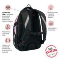 Školní batoh VHODNÝ OD 5. TŘÍDY. Kvalitní, ergonomicky tvarovaný odlehčený Školní batoh s 3D zádovým systémem. Parametry školního batohu: Rozměr: v 46 cm x š 34 cm x h 20 cm. Hmotnost 0,8 kg. Objem: 25 l. Nosnost: 8 kg. Vlastnosti školního batohu: Polstrování je z prodyšného materiálu. Na bocích batohu jsou kapsy na láhev na pití. Skládá se ze 3 komor, hlavní a prostřední komora je vhodná pro formát A4, v přední kapse je organizér na drobné předměty, klíče apod. Kapsa na notebook (do velikosti 15") v zadní komoře. Postranní stahovací přezky na ztenčení prázdného batohu. Bezpečnostní prvky na všech stranách batohu. Polstrované ramenní popruhy. Hrudní pás pro lepší rozložení váhy batohu na zádech. Zpevněné dno. Vodoodpudivý materiál - 100% polyester.