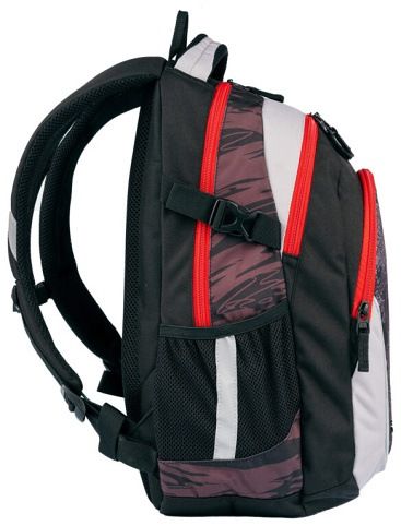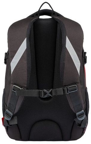 Školní batoh VHODNÝ OD 5. TŘÍDY. Kvalitní, ergonomicky tvarovaný odlehčený Školní batoh s 3D zádovým systémem. Parametry školního batohu: Rozměr: v 46 cm x š 34 cm x h 20 cm. Hmotnost 0,8 kg. Objem: 25 l. Nosnost: 8 kg. Vlastnosti školního batohu: Polstrování je z prodyšného materiálu. Na bocích batohu jsou kapsy na láhev na pití. Skládá se ze 3 komor, hlavní a prostřední komora je vhodná pro formát A4, v přední kapse je organizér na drobné předměty, klíče apod. Kapsa na notebook (do velikosti 15") v zadní komoře. Postranní stahovací přezky na ztenčení prázdného batohu. Bezpečnostní prvky na všech stranách batohu. Polstrované ramenní popruhy. Hrudní pás pro lepší rozložení váhy batohu na zádech. Zpevněné dno. Vodoodpudivý materiál - 100% polyester.