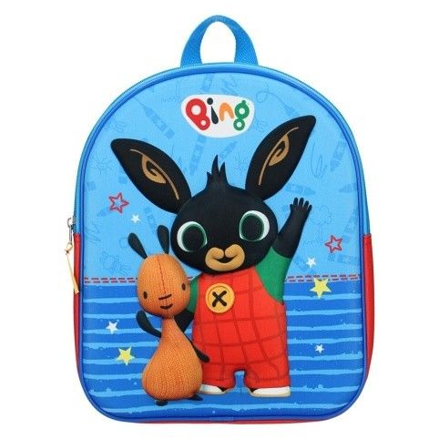 Cestovní batůžek s obrázkem zajíčka Binga a Flopa je vhodný pro předškolní děti i malé školáky na výlety. Batoh králíček Bing má jednu hlavní komoru se zapínáním na zip. Má široké popruhy, které lze délkově nastavovat, ouško pro přenášení v ruce nebo pověšení. Rozměry batohu jsou 31 × 25 × 12 cm.