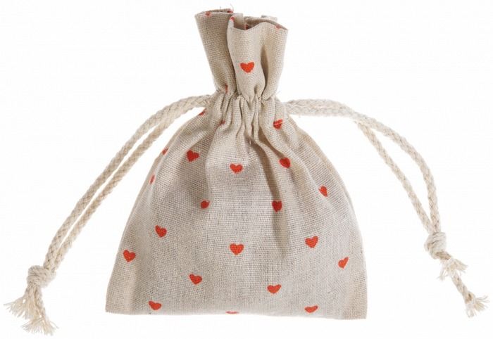 Bavlněný dárkový sáček se šňůrkou na stažení- ČERVENÉ SRDCE-18x14cm