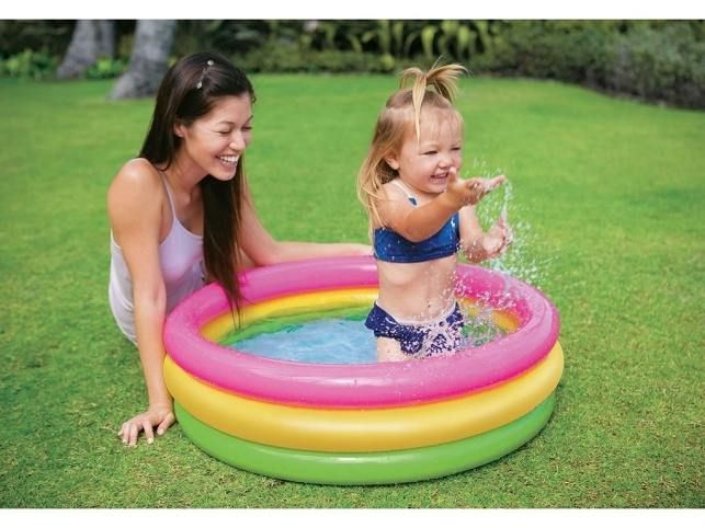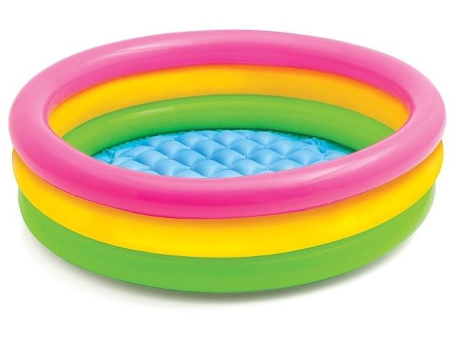 Dětský bazén ze tří barevných pruhů, měkká protiskluzová podlážka, kapacita 56 L. Součástí balení je opravná sada. 86cmx25cm