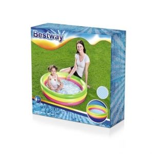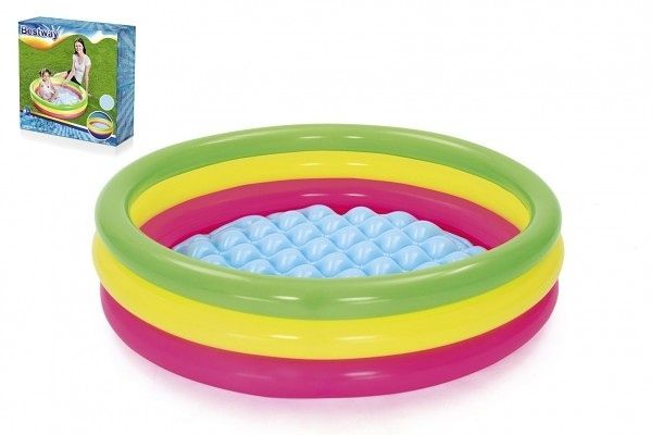 V horkých letních dnech není pro vaše nejmenší lepší osvěžení, než v nafukovacím bazénku! Bazén je vhodný jako brouzdaliště. Barevný tříkomorový nafukovací bazén, který se hodí na zahradu, kde udělá dětem jistě velkou radost. Podlaha z měkčeného PVC zabraňuje odření a působí protiskluzově.