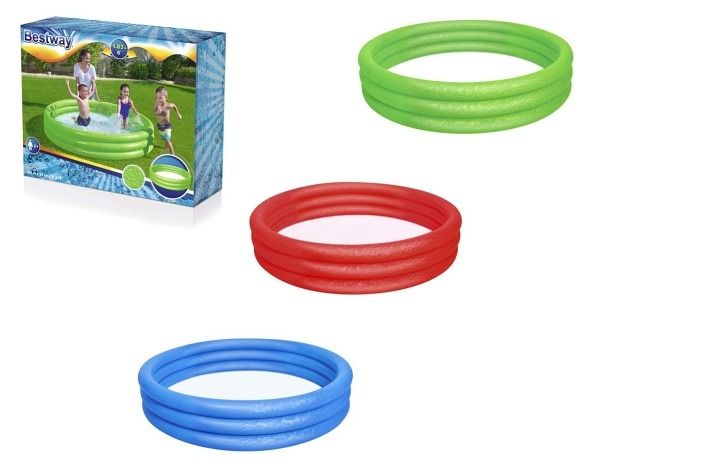 je vhodný jako brouzdaliště. Jednobarevný tříkomorový nafukovací bazén, který se hodí na zahradu, kde udělá dětem jistě velkou radost. Podlaha z měkčeného PVC zabraňuje odření a působí protiskluzově.