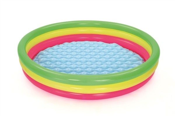 V horkých letních dnech není pro vaše nejmenší lepší osvěžení, než v nafukovacím bazénku! Bazének je vhodný jako brouzdaliště. Barevný tříkomorový nafukovací bazén, který se hodí na zahradu, kde udělá dětem jistě velkou radost. Podlaha z měkčeného PVC zabraňuje odření a působí protiskluzově.