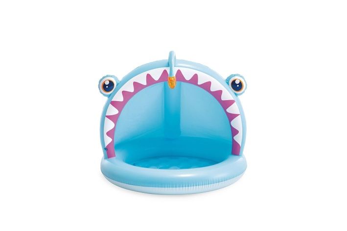 Malý nafukovací bazén je ideální volbou na zahradu během horkých letních dní, kdy se děti potřebují ochladit a vydovádět se ve vodě. Bazén je se stříškouve tvaru ryby.
