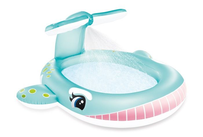 Dětský bazén ve stylovém provedení velryby má ve zvednutém ocásku umístěný rozstřikovač, který se postará o příjemnou spršku během horkých letních dnů, stačí jen napojit zahradní hadici. Bazén je z kvalitního vinylu o síle 0,28 mm, skládá se ze dvou vzduchových komor s dvojitým ventilem. Rozměry jsou 201 x 196 x 91 cm, objem 200 l při výšce hladiny 18 cm. Součástí balení jsou také opravné záplaty. Doporučený věk: od 2 let Nafukovací hračky a potřeby Intex splňují nejpřísnější bezpečnostní normy na zpracování a použité materiály.