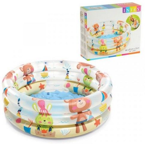 Tříkomorový bílý bazének s potiskem barevných veselých zvířátek je určen pro nejmenší děti. Doporučená výška vody je 15 cm, kdy se děti mohou příjemně ovlažit a pohrát si s hračkami do vody. Bazén má nafukovací dno pro větší pohodlí. Firma Intex obhajuje svoji kvalitu výrobků pro rekreaci a zábavu na celosvětovém trhu již několik desítek let. To platí jak pro bazény a jejich příslušenství, tak pro nafukovací hračky. neobsahuje ftaláty a latex příznivá cena, kvalitní materiál splňuje nejpřísnější bezpečnostní normy Objem vody: 33 l Rozměry: 61 x 22 cm Doporučený věk: od 12 měsíců. Manuál ke stažení.