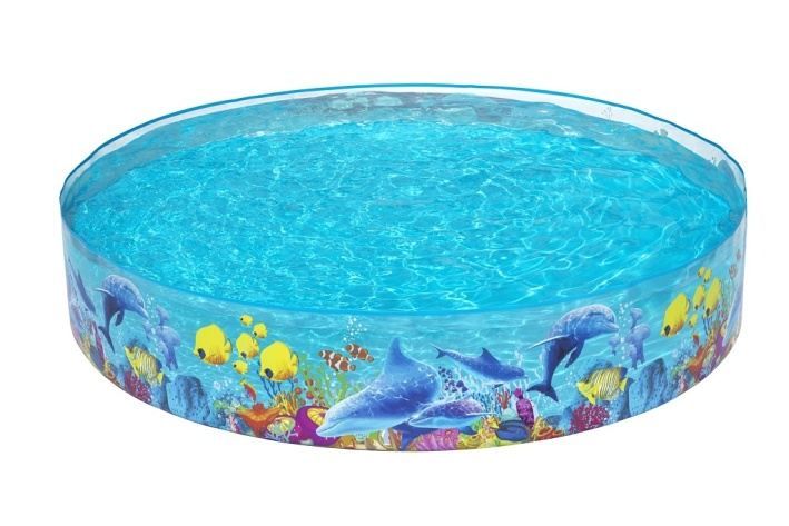 Dětský bazének s pevnou stěnou ve veselém designu mořského světa. Průměr bazénku je 2,44 m a maximální vodní kapacita je 2074 l.