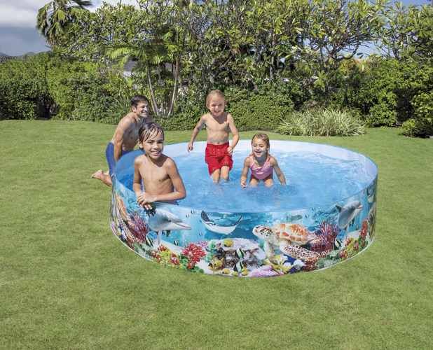 Pevný nafukovací bazén s realistickým motivem mořského dna, kapacitou