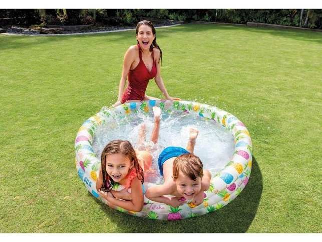 Nafukovací bazén pro děti od 3 let o velikosti 132×28cm. Kapacita bazénku 19 cm výšky stěny. Vyrobeno z kvalitního vinylu. Opravná sada součástí balení.