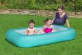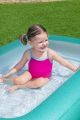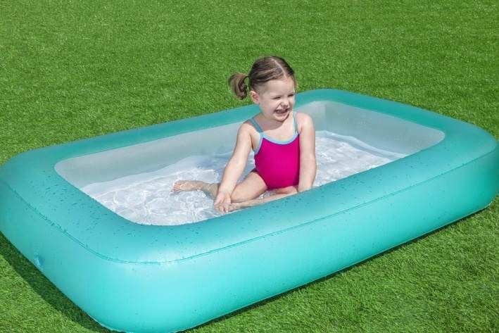 Bazének Kiddie je nafukovací dětský bazén navržený speciálně pro nejmenší děti od dvou let, který nabízí bezpečné a zábavné prostředí pro vodní hry. Jeho rozměry 165 cm na délku, 104 cm na šířku a 25 cm na výšku poskytují dostatečný prostor pro pohodlnou hru dvou malých dětí najednou. Bazén je vyroben z odolného PVC materiálu, což zaručuje jeho dlouhou životnost a odolnost vůči poškození. Povrch bazénu je hladký a příjemný na dotek, zatímco nafukovací podlážka s jemnými vypouklými vzory zajišťuje extra pohodlí při sezení nebo ležení ve vodě. Bazének má příjemnou tyrkysovou barvu, která je vizuálně atraktivní a hodí se do jakéhokoliv venkovního prostředí, například na zahradu nebo terasu. Konstrukce bazénu je stabilní díky širokému nafukovacímu lemu, který zároveň slouží jako opora pro děti při hře. Součástí výrobku je také opravná záplata, která umožňuje snadné a rychlé opravy v případě drobných propíchnutí nebo jiného poškození. Bazén je vybaven průhledným ventilem pro snadné nafouknutí i vyfouknutí, což zjednodušuje jeho manipulaci a skladování. Bazének Kiddie Pool je vhodný nejen pro zábavu a ochlazení během horkých letních dnů, ale díky svému bezpečnému a pohodlnému provedení také přispívá k rozvoji motoriky a smyslových dovedností dětí. Jeho rozměry a kapacita vody (přibližně 102 litrů) jsou přizpůsobeny tak, aby byl bazén kompaktní a snadno přenosný, ale přitom dostatečně prostorný pro spoustu radosti. Díky jednoduchému designu bez zbytečných doplňků je bazének snadno udržovatelný a rychle připravený k použití. Celkově je bazén Kiddie ideální volbou pro rodiče, kteří chtějí svým malým dětem poskytnout bezpečné a pohodlné místo pro vodní hry, které podpoří jejich aktivitu a radost ze hry venku. Jeho kvalitní materiály, praktické funkce a příjemný barevný odstín z něj činí vhodný doplněk pro rodinné letní aktivity.