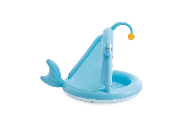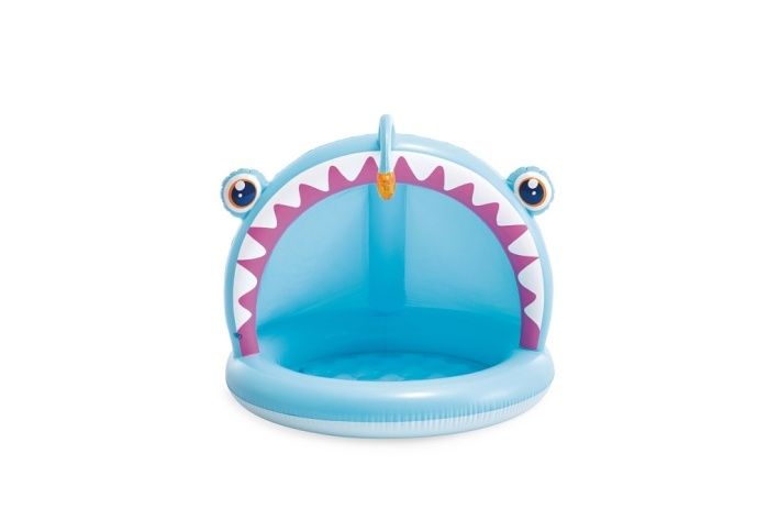 Dětský bazének se stříškou ve veselém designu ryby s velkýma očima. Přibližná velikost 127 m x 102 m x 86 cm. Vodní kapacita – výšky stěny bazénku – 13 cm-45 l. Bazének má nafukovací podlážku pro extra pohodlí dětí. Opravná záplata součástí balení. Doporučený věk: 1–3 roky.