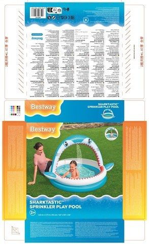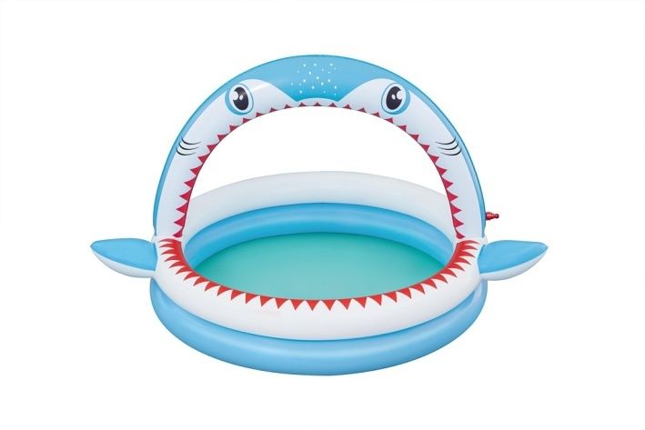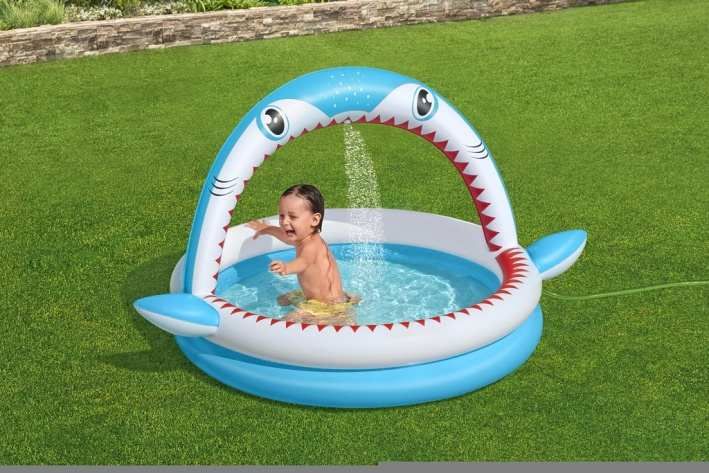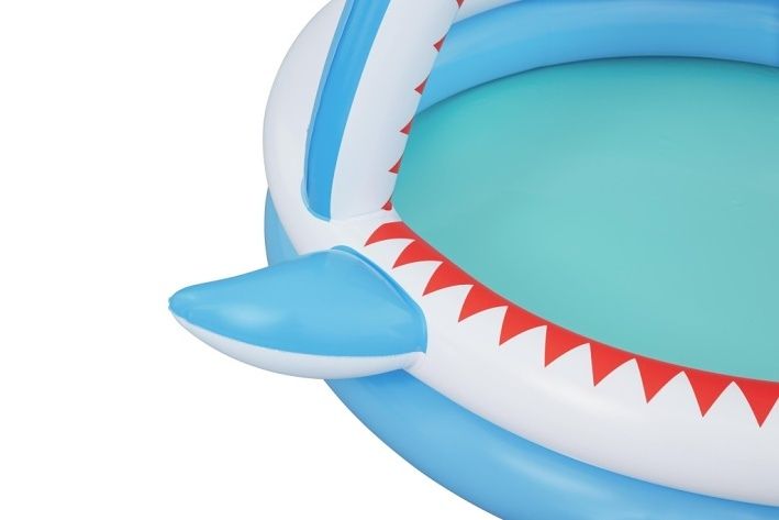 Bazének Sharktastic nafukovací dětský je navržený speciálně pro malé děti od dvou let, které si užijí mnoho zábavy na čerstvém vzduchu. Tento bazének má rozměry 163 cm na délku, 127 cm na šířku a výšku 92 cm, což poskytuje dostatek prostoru pro bezpečné a pohodlné koupání. Bazének je vyroben z pevného a odolného PVC materiálu, který zajišťuje dlouhou životnost a snadnou údržbu. Design bazénku je velmi atraktivní a poutavý, připomíná žraloka s modrobílou barvou, červenými zuby a výraznýma očima. Bazének má nafukovací oblouk ve tvaru žraločí tlamy, který je vybaven sprškou. Stačí jen připojit zahradní hadici k ventilu na oblouku a voda začne stříkat, což dětem přináší osvěžující zážitek a zábavu během horkých dnů. Oblouk je stabilně upevněn a jeho design zahrnuje i malé ploutve po stranách bazénku, které dodávají vzhledu hravou a tematickou podobu. Objem vody, který bazének pojme, je přibližně 130 litrů, což je ideální množství pro malé děti. Součástí balení je také opravná záplata, která umožňuje snadné opravy případných menších poškození. Díky praktickým ventilům pro rychlé nafukování i vypouštění vody je bazének snadno připraven k použití i následnému sbalení a uskladnění. Bazének Sharktastic je tak vhodným doplňkem pro letní venkovní hry a koupání na zahradě.