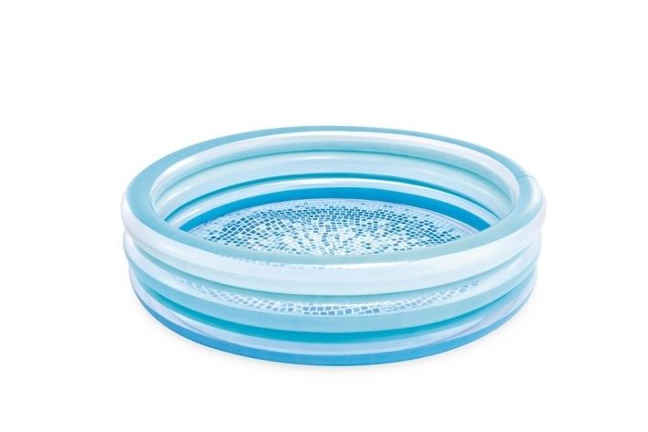 Bazének je vyroben z testovaného masivního vinylu, přibližná velikost 147cm x33 cm, vodní kapacita 23 cm o objemu maximálně 330 l. Tříkruhový bazének v modrém designu je vhodný pro děti od 2 let. Opravná záplata přiložena.