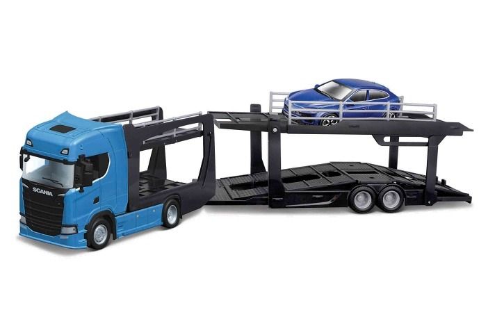 Bburago 1:43 Kamion Multicar Carrier Scania 770S Black + Lamborghini Urus