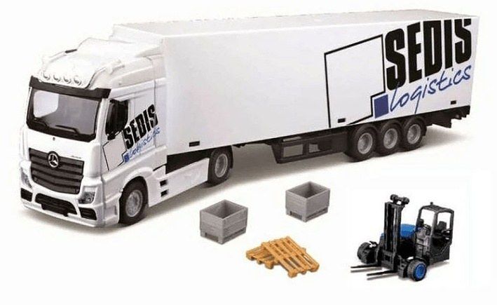 Bburago 1:43 MB Actros SEDIS Logistika s vysokozdvižným vozíkem a příslušenstvím
