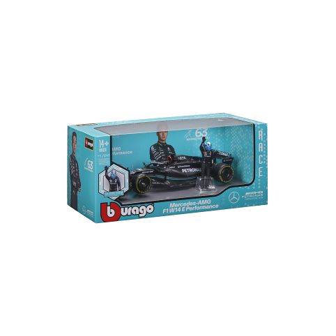 Bburago 1:24 RACE Formula F1 - Mercedes-AMG F1 W14 E (2023) #63 George Russell with driver and decorative box