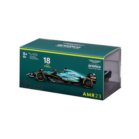 Bburago 1:43 RACE Formula F1 - Aston Martin AMR23 (2023) #18 Lance Stroll with driver and decorative box