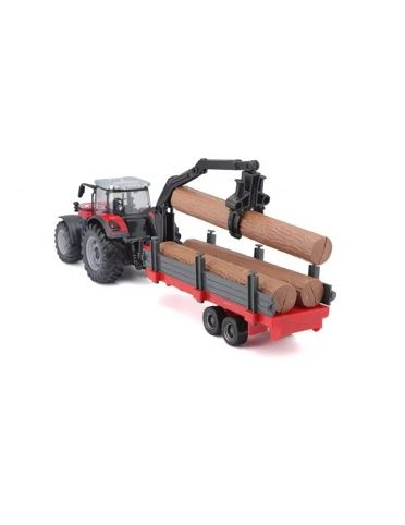 Bburago Farm 10cm Traktor Massey FERGUSSON 8740S - wood trailer