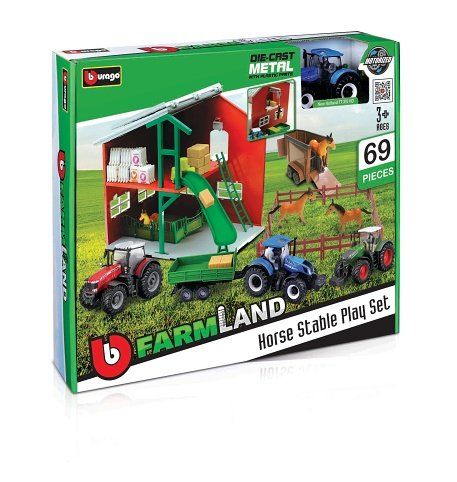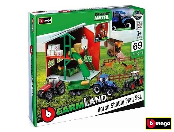Bburago Farmland Koňské stáje s traktorem