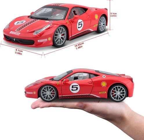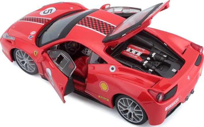 Kovový model auta 1:24 Bburago 18-26302 Ferrari 458 Challenge nejen pro sběratele. Má otevírací kapotu, natáčení kol volantem je plně funkční. Barva modelu je červená.