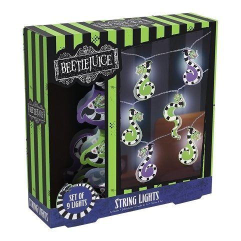 Světelný řetěz v oficiální licenci Beetlejuice. Řetěz je 130cm dlouhý a k provozu jsou potřeba 2× AA baterie, které nejsou součástí balení.